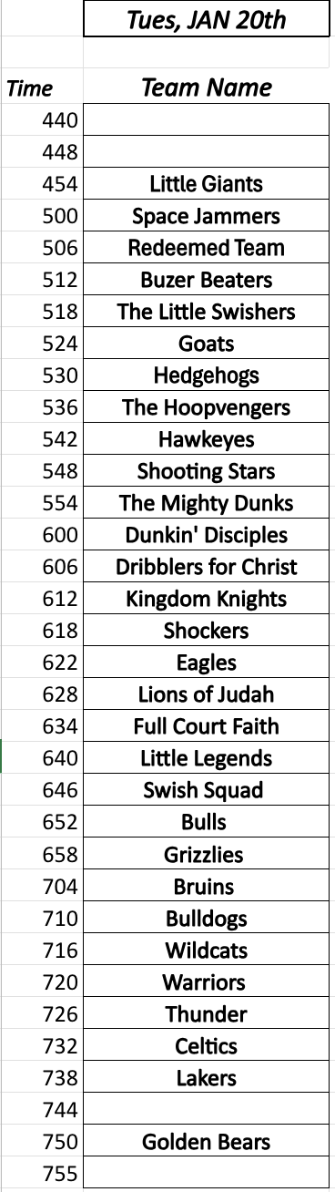 Season after season things change slightly for us at Shepherd Sports depending on how many athletes sign up and the needs of the gym space for church wide activities. The following is what we have planned for our Winter Season but could potentially change slightly. Most of our sessions take place in the Shepherd Gym but there is a chance others gyms could be used if needed. Winter league will be a 7 game season with 6-7 practices.